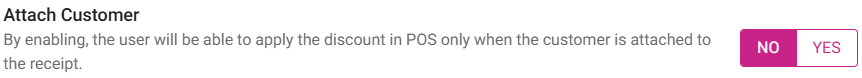 Select whether there is a requirement to Attach a Customer to enable the Discount.